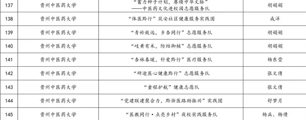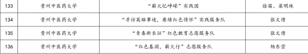 2025年贵州省大学生暑期文化科技卫生"三下乡"社会实践活动"优秀品牌项目"表扬名单