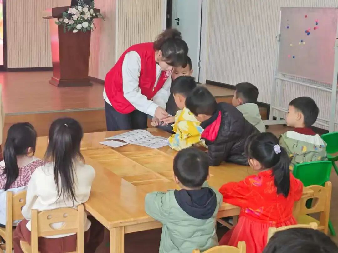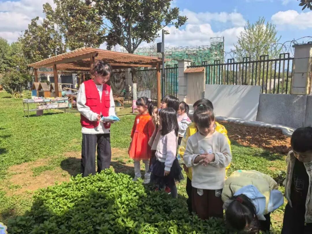 2024级中医内科学硕士研究生仝文茁作为主讲志愿者,以充满童趣的语言,为孩子们讲述了植树护绿的意义,并生动介绍了薄荷、黄精、板蓝根、栀子等安全易种中药苗的形态特点与趣味知识,引发了孩子们的浓厚兴趣。