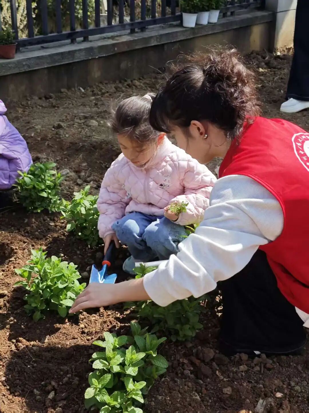 在实践环节,志愿者们首先清晰演示了松土、栽种、培土、浇水的完整步骤及注意事项。随后,孩子们化身“小小种植家”,在志愿者“一对一”的耐心引导与看护下,亲手体验了中药苗栽种的全过程。种植完成后,孩子们郑重地为自己的“本草小园地”插上专属姓名标识牌,并认真学习了日后养护的小知识,在实践中感悟生命成长与呵护自然的责任。