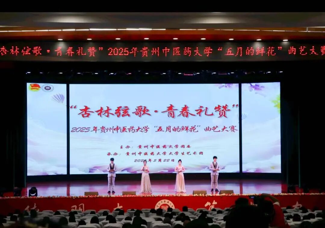 5月22日,由校团委主办,大学生艺术团承办的“杏林弦歌·青春礼赞”2025年贵州中医药“五月的鲜花”曲艺大赛在花溪校区大礼堂顺利召开。