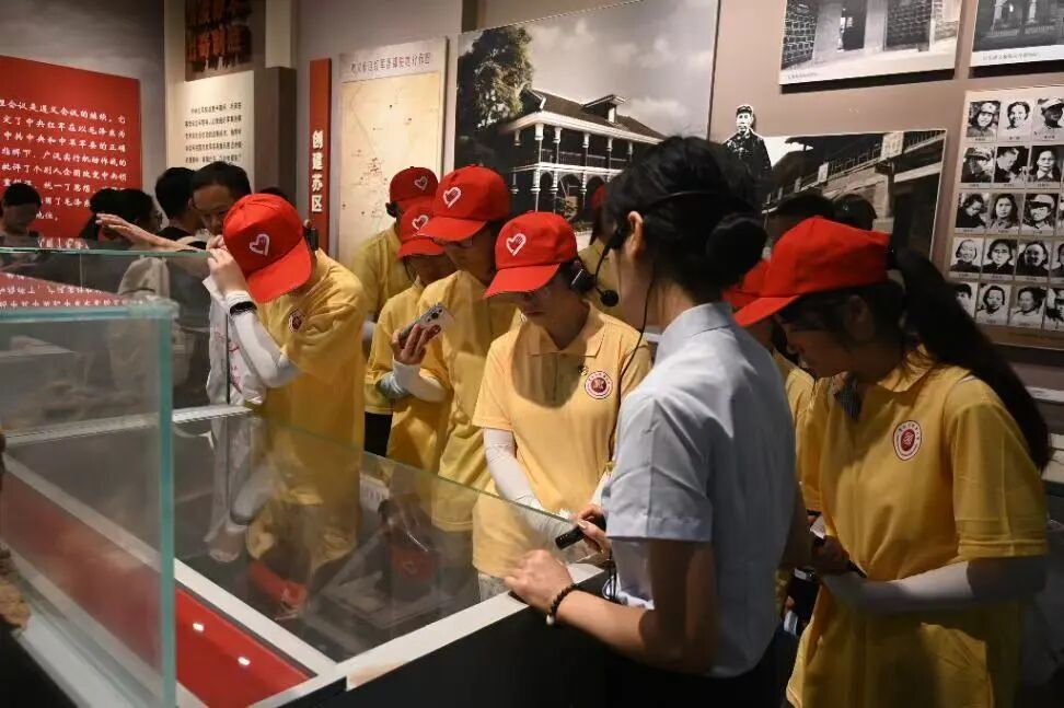 深入苟坝会议会址陈列区,队员们通过观看相关资料视频——“三人军事小组”的深夜决策,静谧灯火中体会“真理在讨论中清晰”的深意。队员们在讲解中触摸历史肌理,在会址与陈列馆的多维度的沉浸体验,让峥嵘岁月在讲解与重演中化为大家青春血脉里的澎湃共鸣。