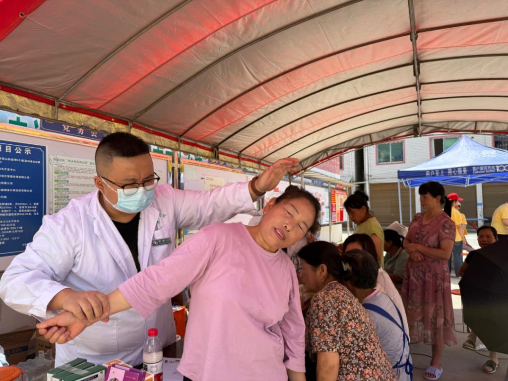 7月5日至9日,实践团在湾滩河镇羊场社区、谷脚镇云龙社区及龙里县社会养老服务中心设立临时医疗咨询服务站。实践团师生为群众提供血压监测、骨伤疾病诊疗咨询、脊柱侧弯检查等诊疗服务,累计完成诊疗超1000人次。针对零工驿站的零工、养老中心的老年人等群体常见病,实践团精心准备骨伤科常用药品,耐心答疑,逐一说明用法用量,获得一致赞誉。