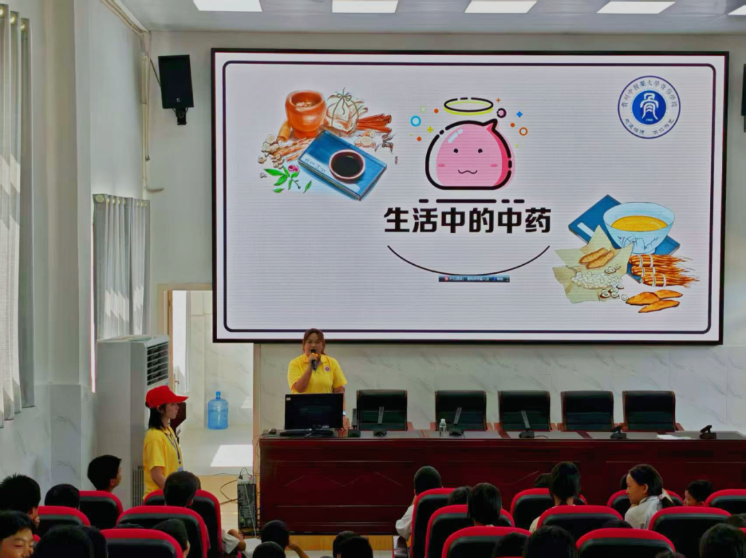 (实践团在湾寨小学宣讲“无处不在的中医药”)