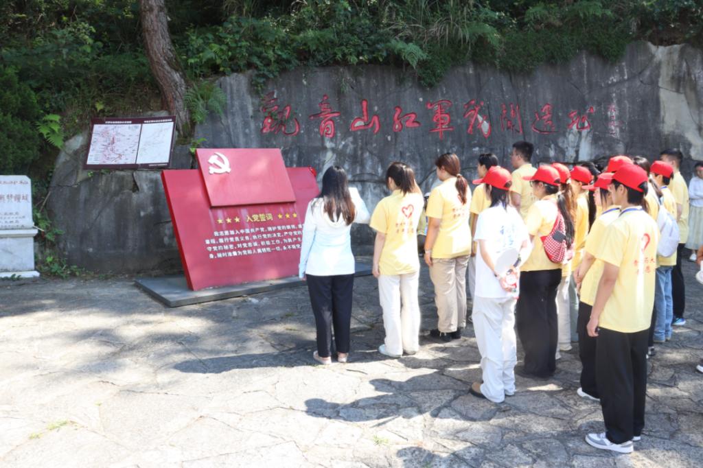 7月6日,实践团来到观音山红军战斗遗址。讲解员深情讲述红军战士英勇作战的感人事迹,党员师生在战斗遗址重温入党誓词,坚定理想信念。同时,实践团参观了当地革命教育实践基地和野生菌市场,系统了解了观音村“特色农业+红色文化+乡村旅游”的发展模式,实地调研并总结了休闲旅游、美丽乡村、生态建设、乡村体验四位一体的乡村旅游“方案”。