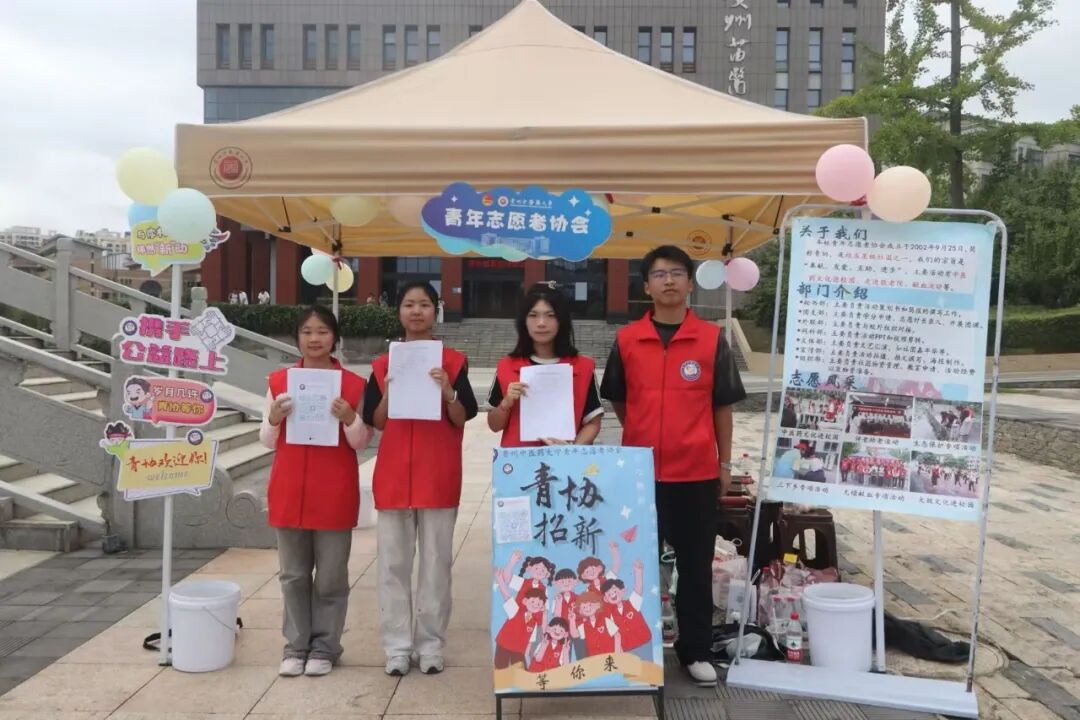 为充实社团力量、激发校园活力、促进学生全面发展,我校于2025年9月21日至22日在花溪校区岐黄广场组织开展了建校60周年社团巡礼节之社团启幕日活动。本次活动面向全校学生,53家社团结合自身特色开展了形式多样的招新工作。